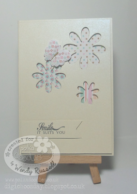 Wendy - You'd expect having to use patterned papers would make your project look quite busy, well I've gone down a different track and done a clean & simple card. All aspects of my card are from the Twiggy and Toots collection. You can also all the papers as a separate bundle here and the butterfly, which is part of the embellies bundle, can be bought here.
